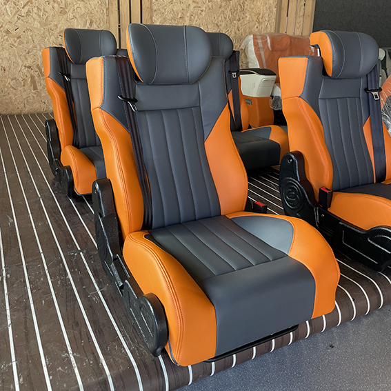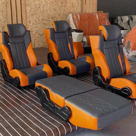 Smart folding bed seat For Car Conversions Easily transformed in just two steps. Recess wing-style headrests minimise head movement Cushion 45cm in depth, Multiple widths available Single, double or triple seat available 65cm high backrest,3-point Safety Belts Multi-angle adjustment with locking mechanisms 1.1 m when flattened,double seats creates a 2.2m bed Adjustable by 26 centimetres front to back Optional 180 degreesrotated bottom box Variety of fabrics/leathers and colours are available