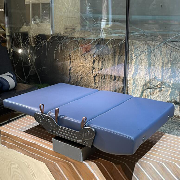 3 folder bed seat For Car Conversions Contoured padding ensuring better support Preventing lateral movement during cornering. Load-bearing point positioned at the two-thirds mark towards the centre Enhancing strength and stability.